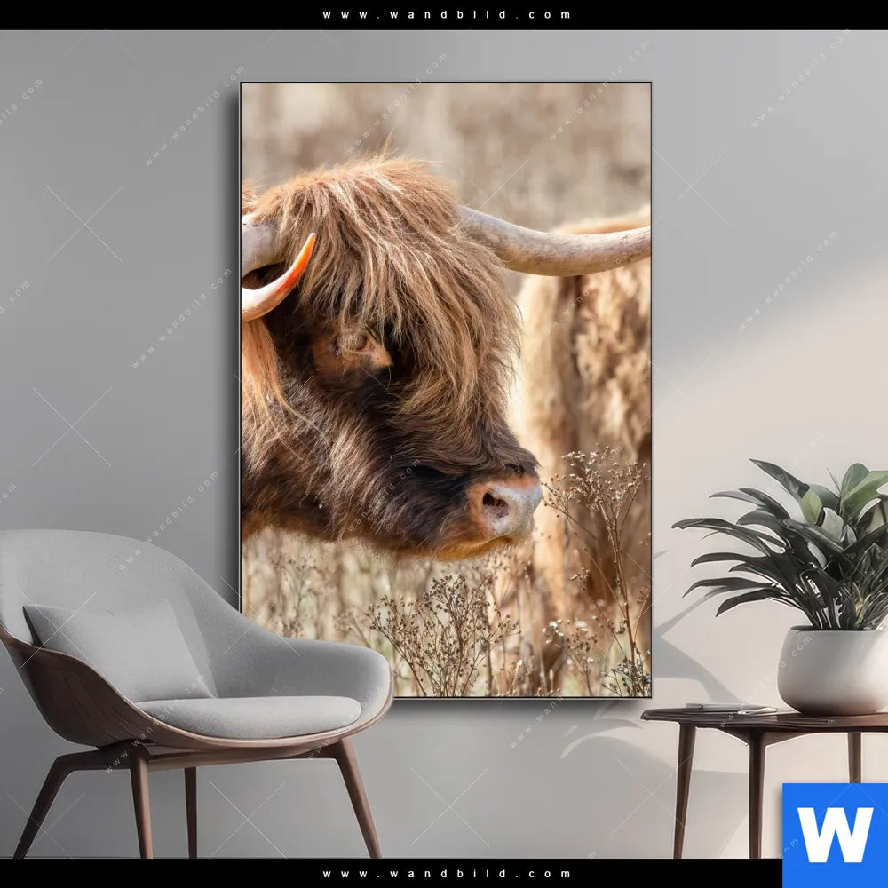 Wechselmotiv Textil | Hochlandrind auf Weide | Hochformat