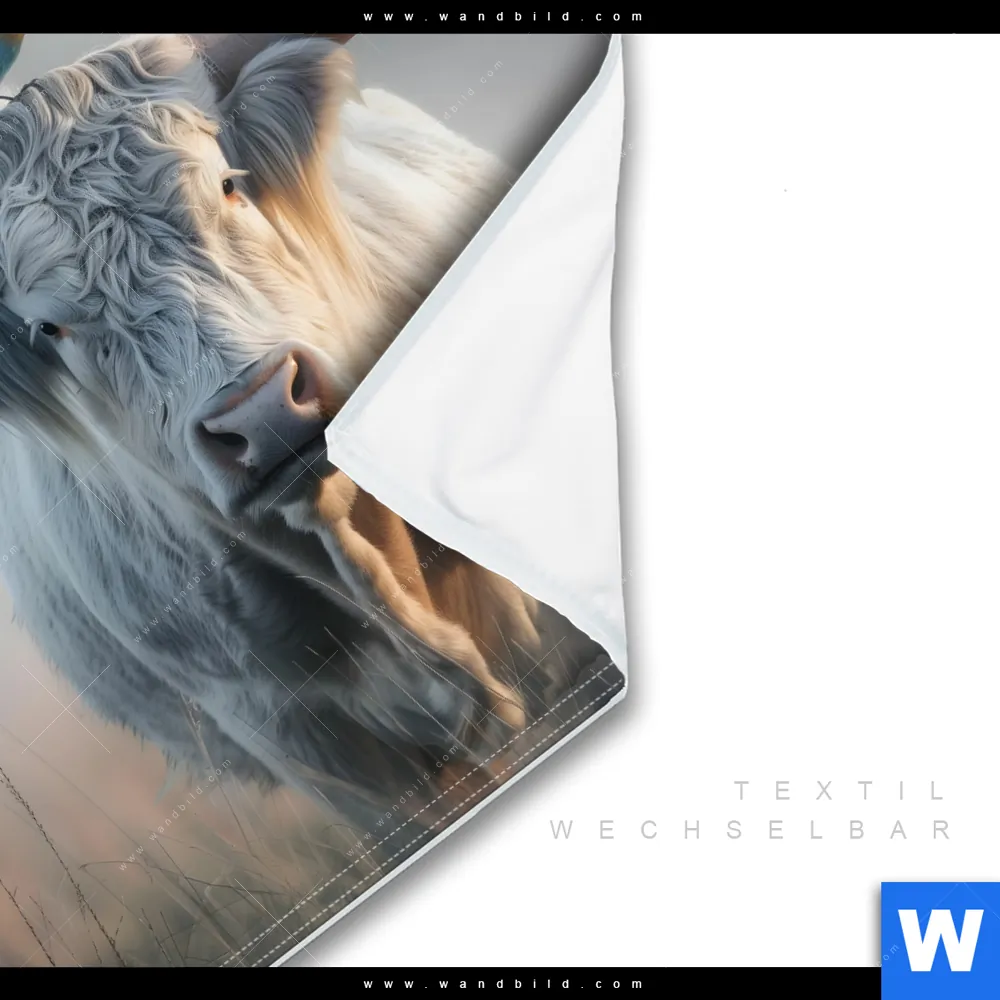 Wechselmotiv Textil | Hochlandrind & bunter Vogel | Quadrat