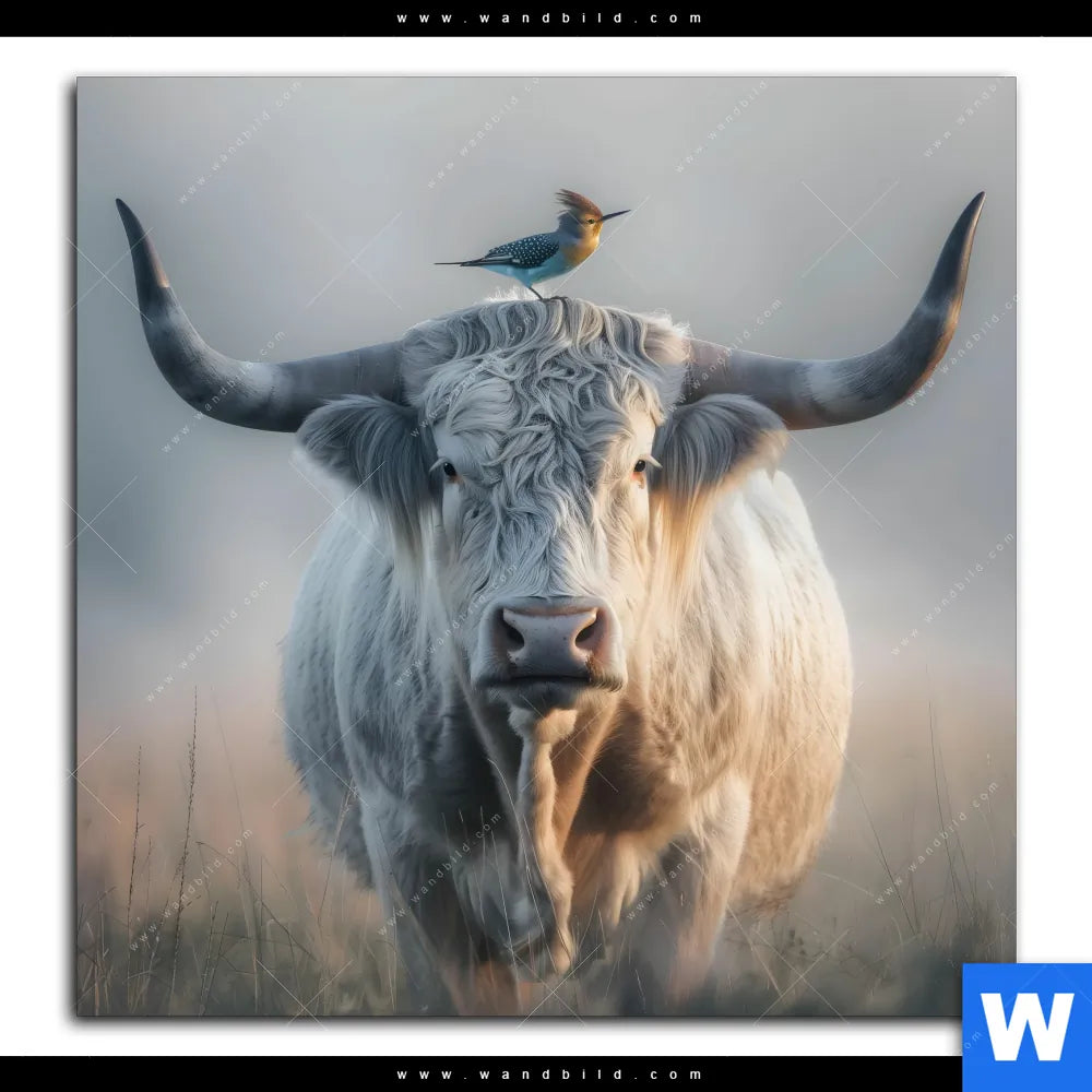 Wechselmotiv | Hochlandrind & bunter Vogel | Quadrat