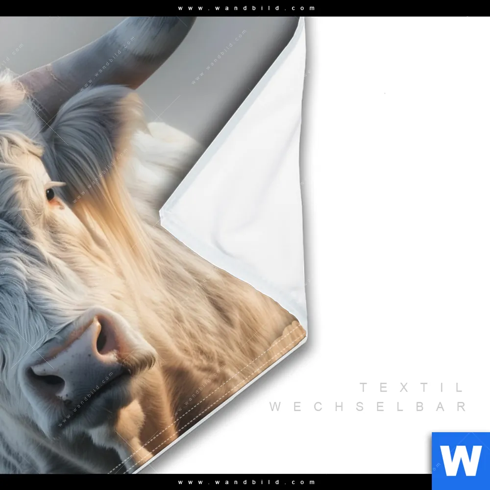 Wechselmotiv Textil | Hochlandrind & bunter Vogel | Querformat