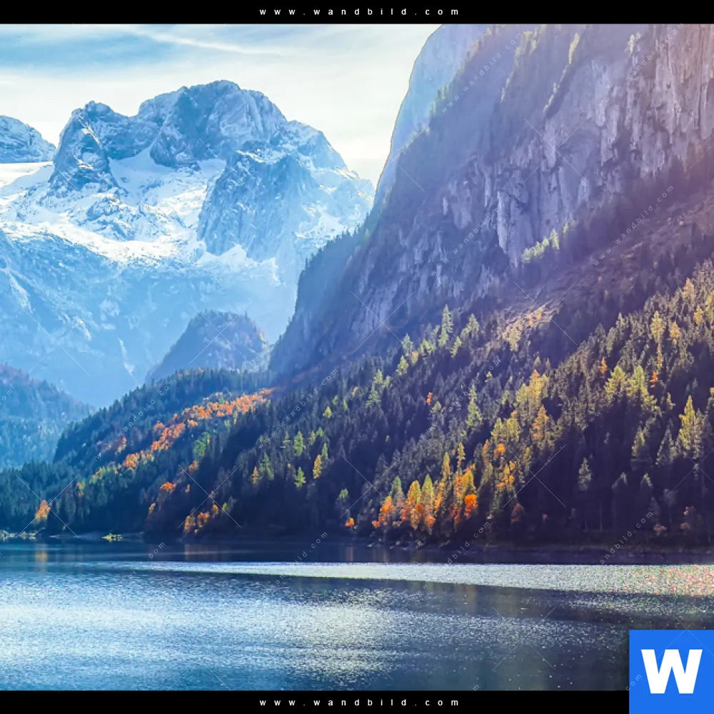 Wechselmotiv Textil | Idyllischer Bergsee im Gebirge | Querformat