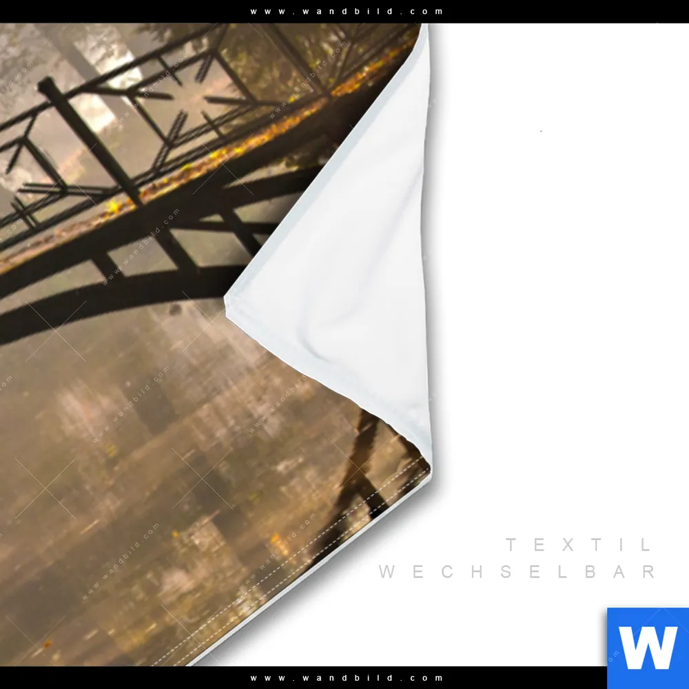 Wechselmotiv Textil | Idyllischer Wald mit Brücke | Panorama