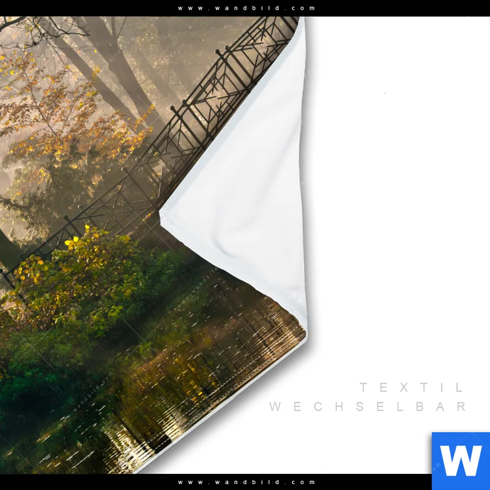 Wechselmotiv Textil | Idyllischer Wald mit Brücke | Quadrat