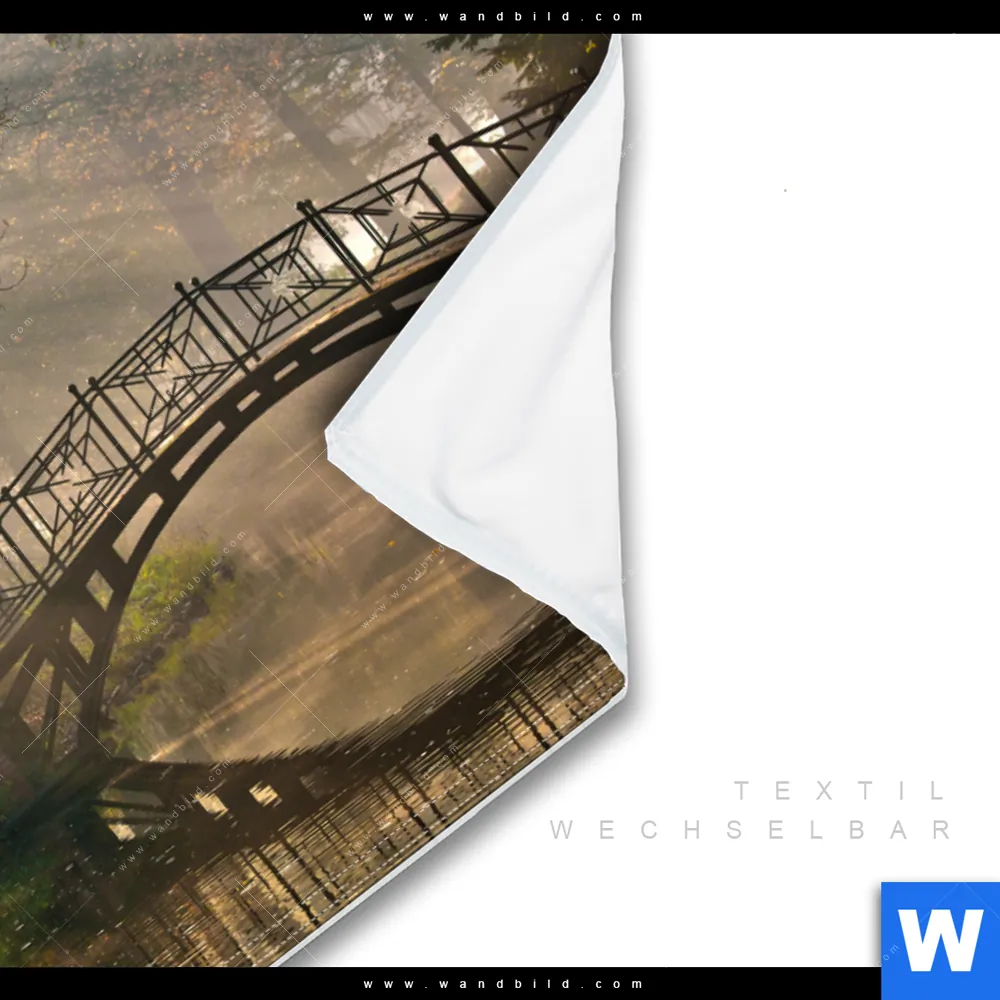Wechselmotiv Textil | Idyllischer Wald mit Brücke | Querformat