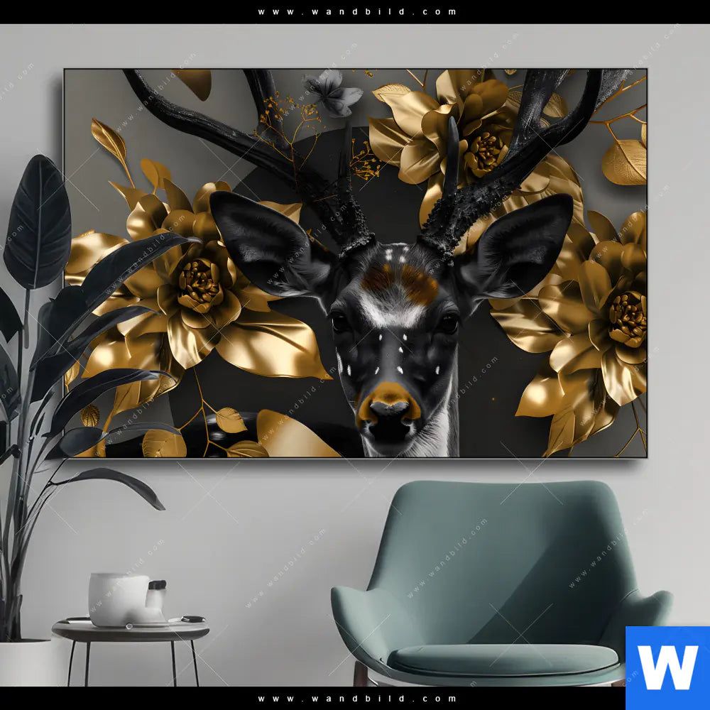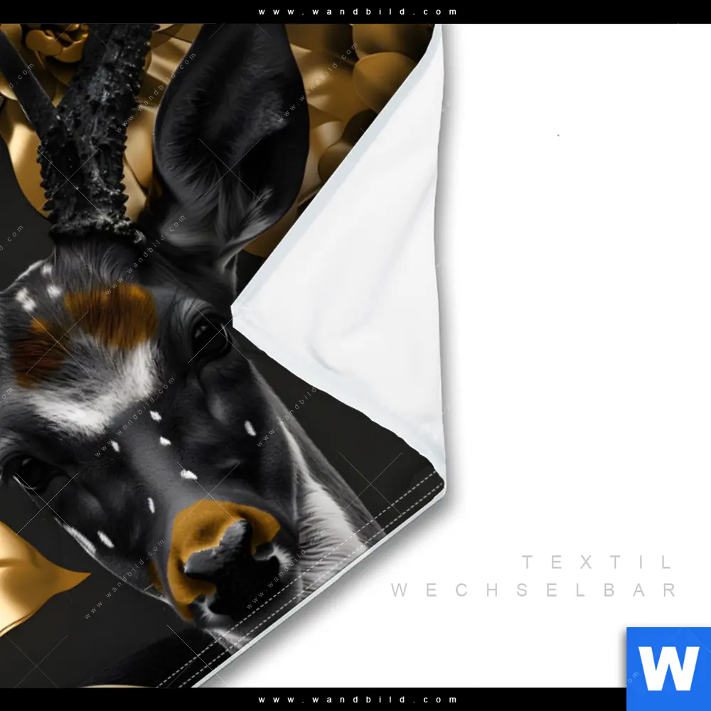 Wechselmotiv Textil | Junger Hirsch und Goldblumen | Querformat