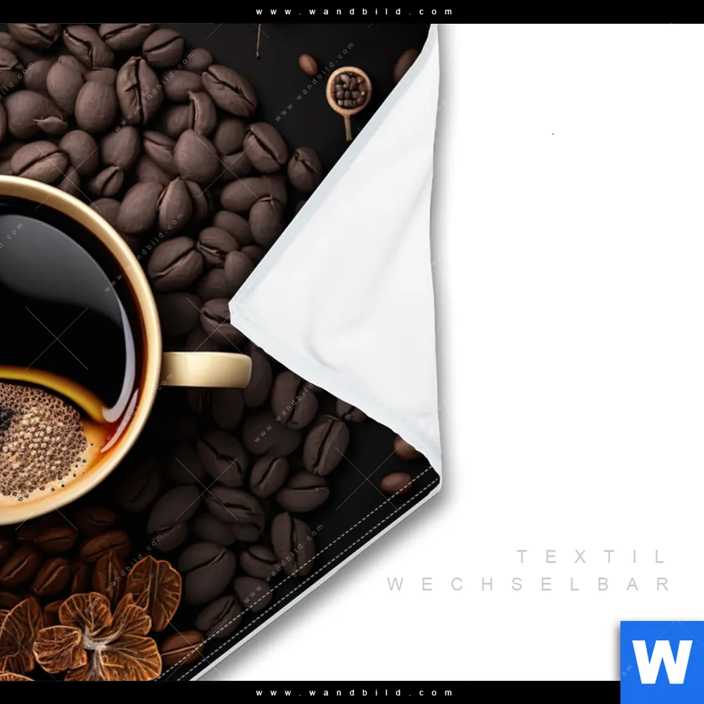 Wechselmotiv Textil | Kaffee mit Blattdekoration | Hochformat