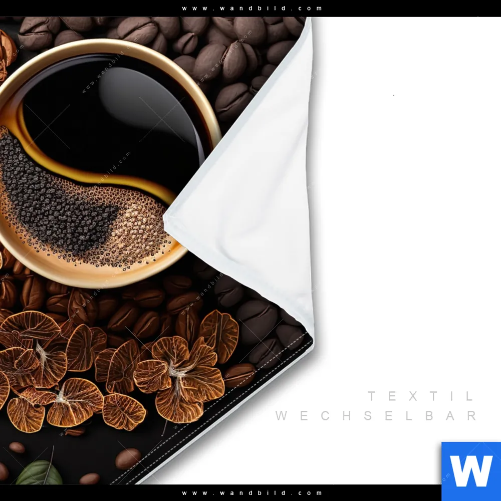 Wechselmotiv Textil | Kaffee mit Blattdekoration | Quadrat