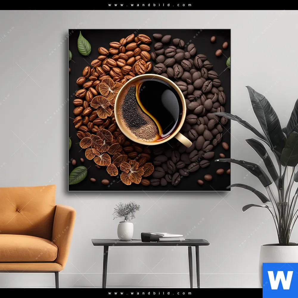 Wechselmotiv | Kaffee mit Blattdekoration | Quadrat
