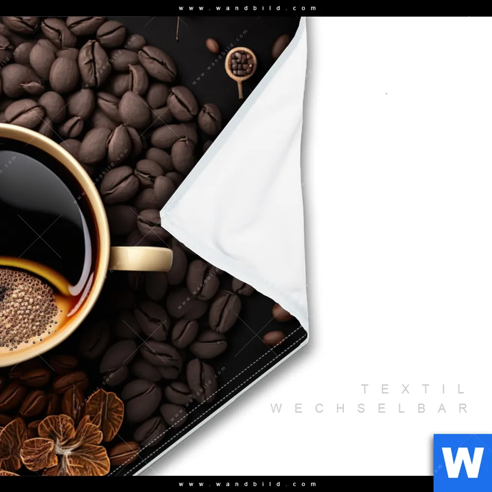 Wechselmotiv Textil | Kaffee mit Blattdekoration | Querformat