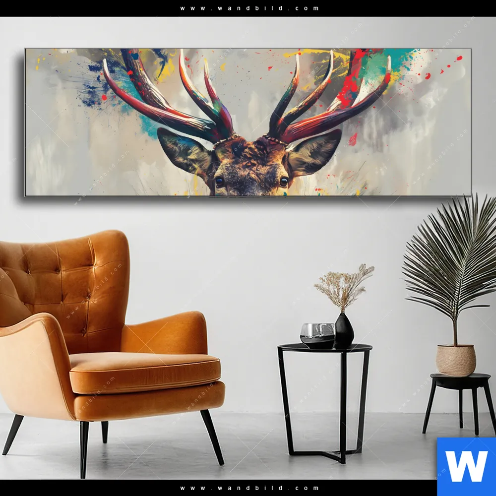 Wechselmotiv | Kreativer Hirsch mit Farbspritzern | Panorama