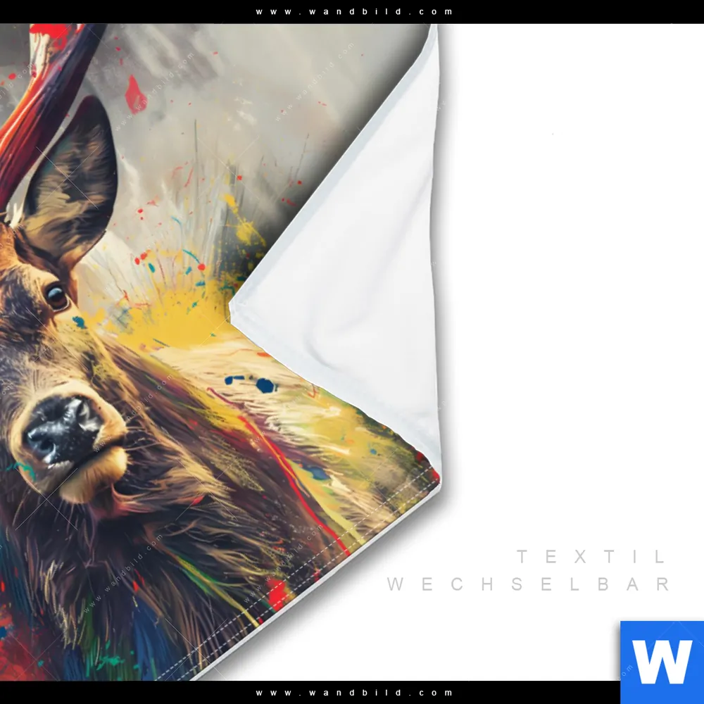 Wechselmotiv Textil | Kreativer Hirsch mit Farbspritzern | Querformat