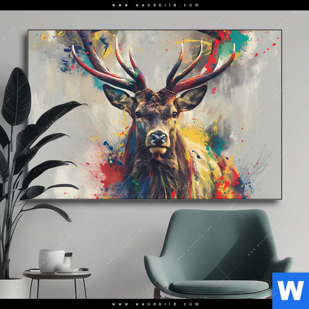 Wechselmotiv | Kreativer Hirsch mit Farbspritzern | Querformat