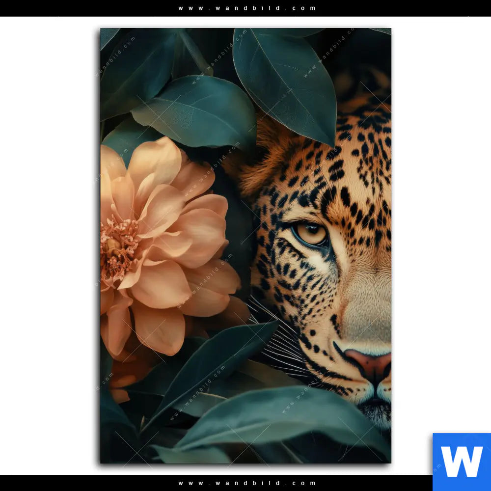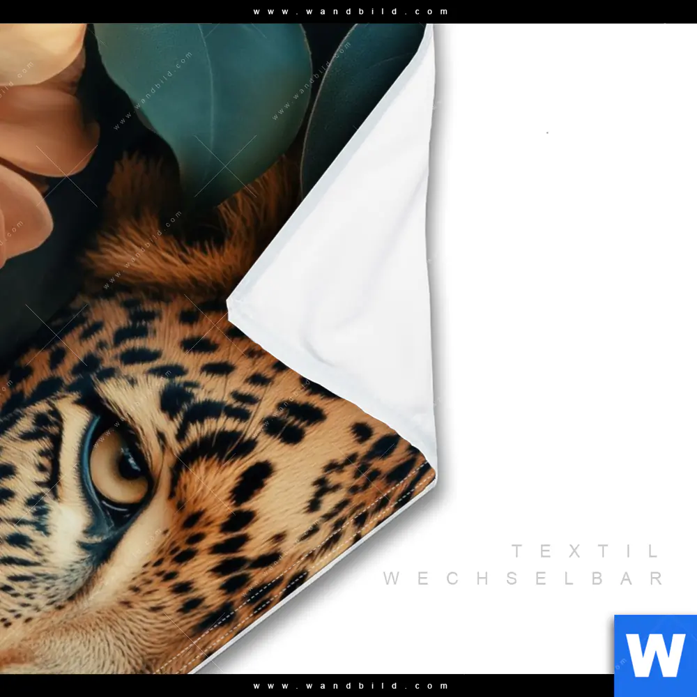 Wechselmotiv Textil | Leopard im Blütenmeer | Hochformat