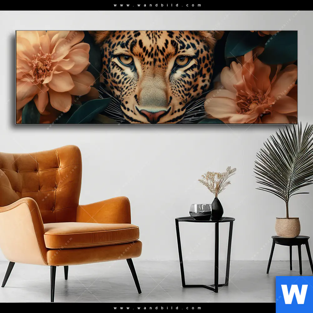 Wechselmotiv Textil | Leopard im Blütenmeer | Panorama