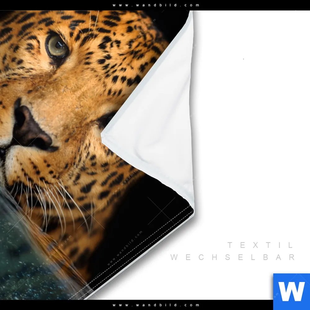 Wechselmotiv Textil | Leopard im Wasser | Hochformat