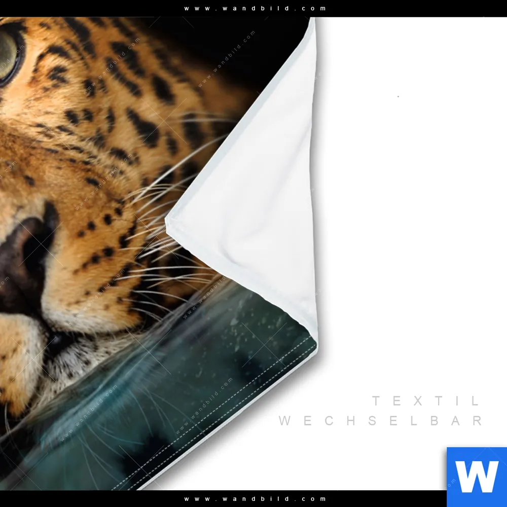 Wechselmotiv Textil | Leopard im Wasser | Querformat