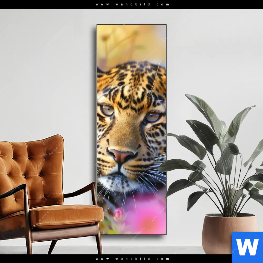 Wechselmotiv Textil | Leopard in blühender Wildnis | Schmal