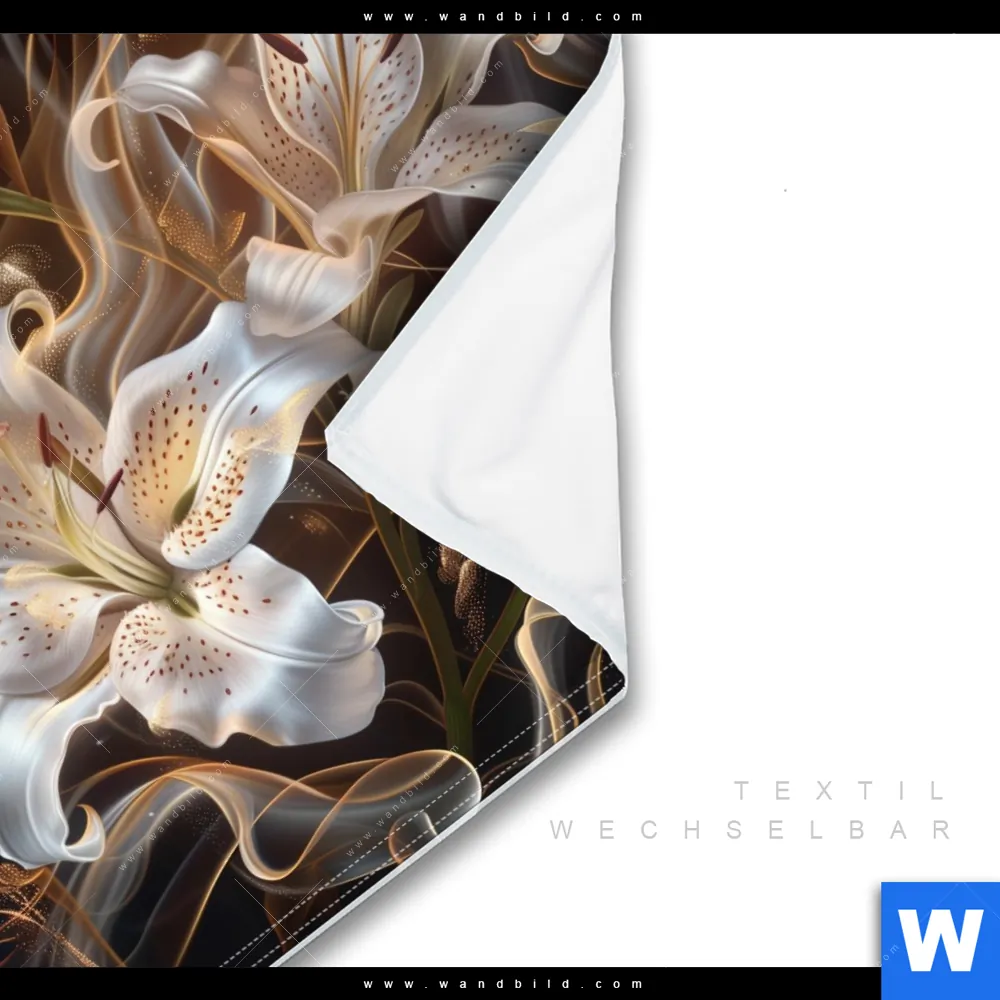 Wechselmotiv Textil | Lilien in goldenem Rauch | Quadrat