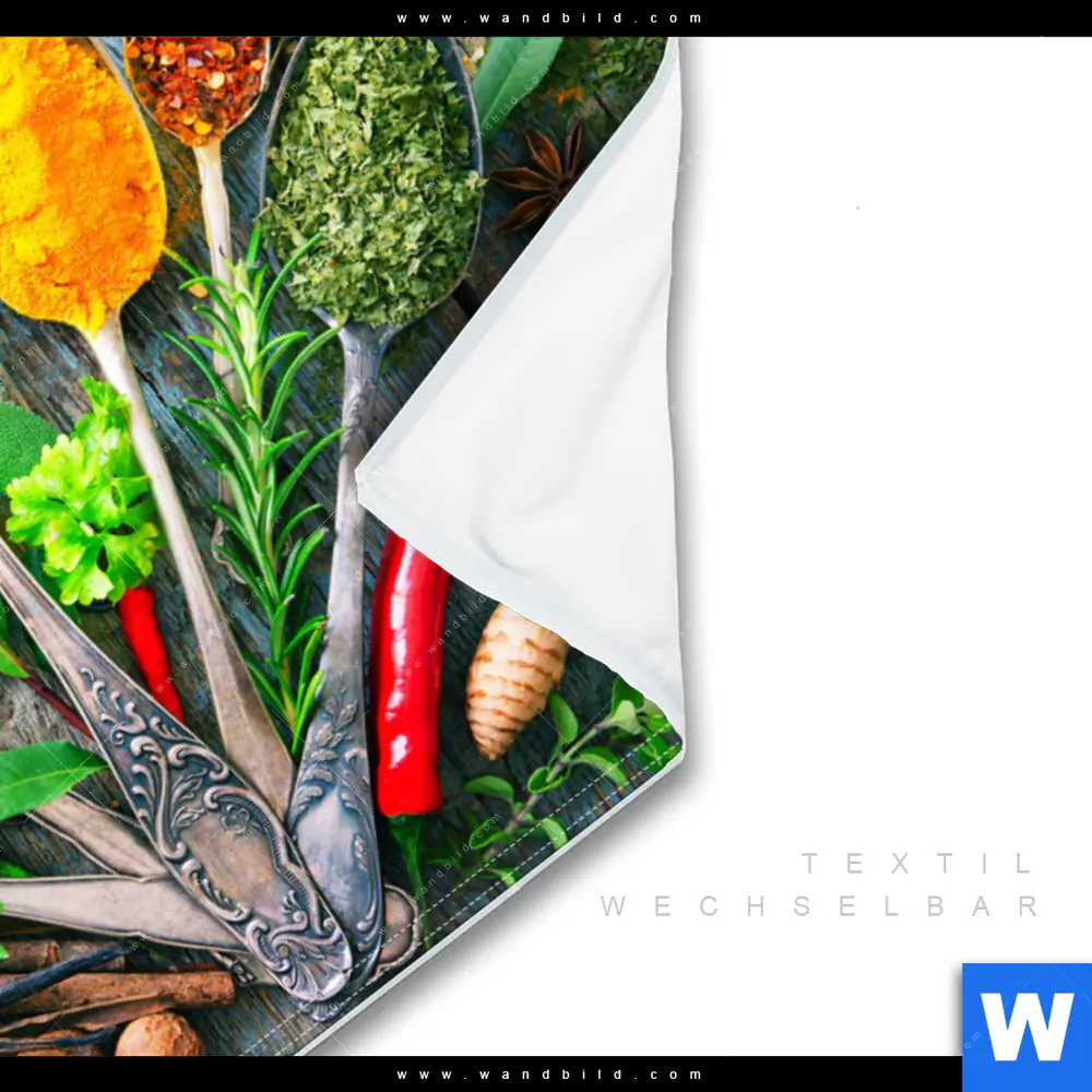 Wechselmotiv Textil | Löffel mit Kräutern und Gewürzen | Querformat