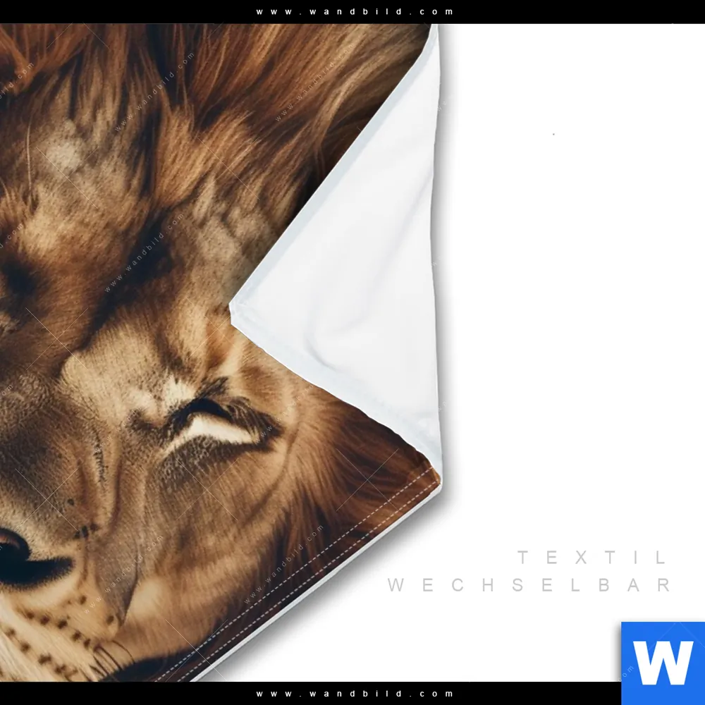 Wechselmotiv Textil | Löwe schläft in Blüten | Hochformat