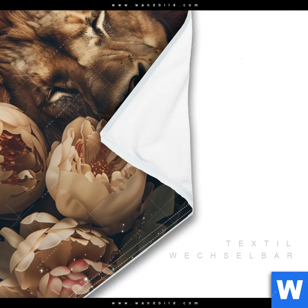 Wechselmotiv Textil | Löwe schläft in Blüten | Quadrat