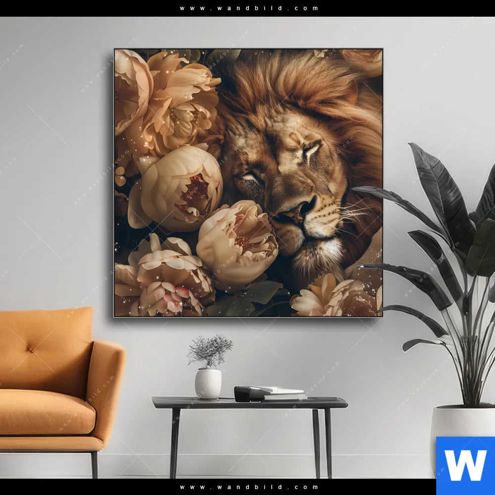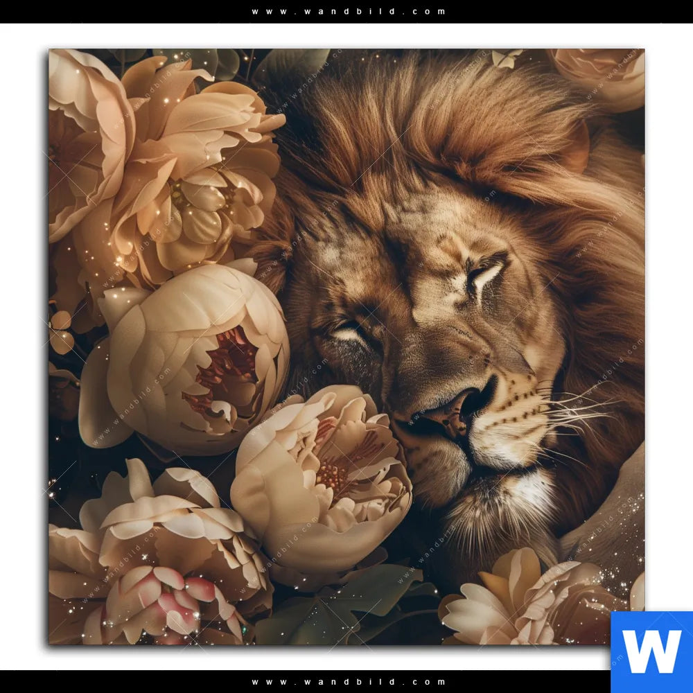 Wechselmotiv | Löwe schläft in Blüten | Quadrat