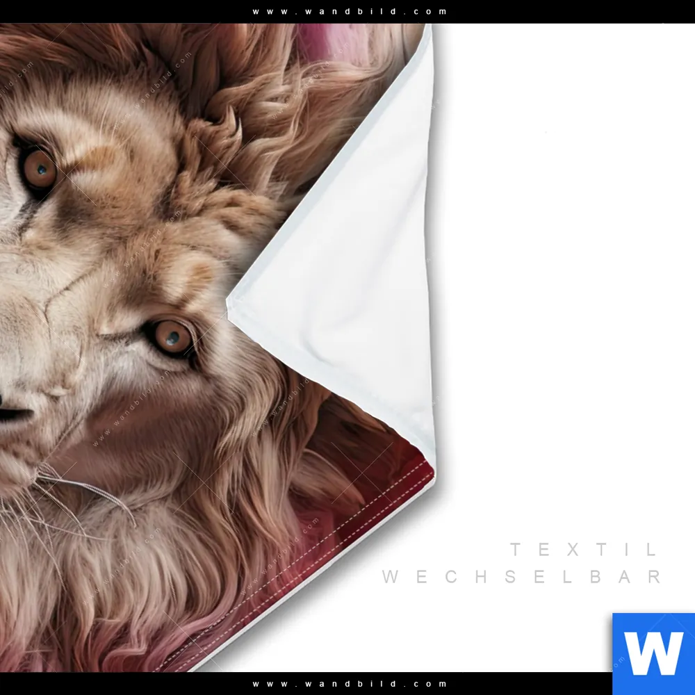 Wechselmotiv Textil | Löwengesicht in buntem Rauch | Hochformat