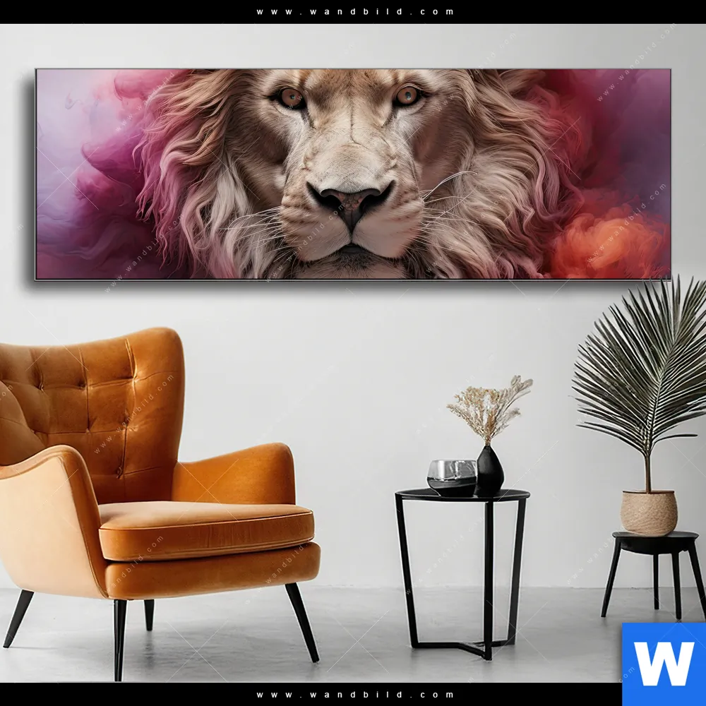 Wechselmotiv | Löwengesicht in buntem Rauch | Panorama