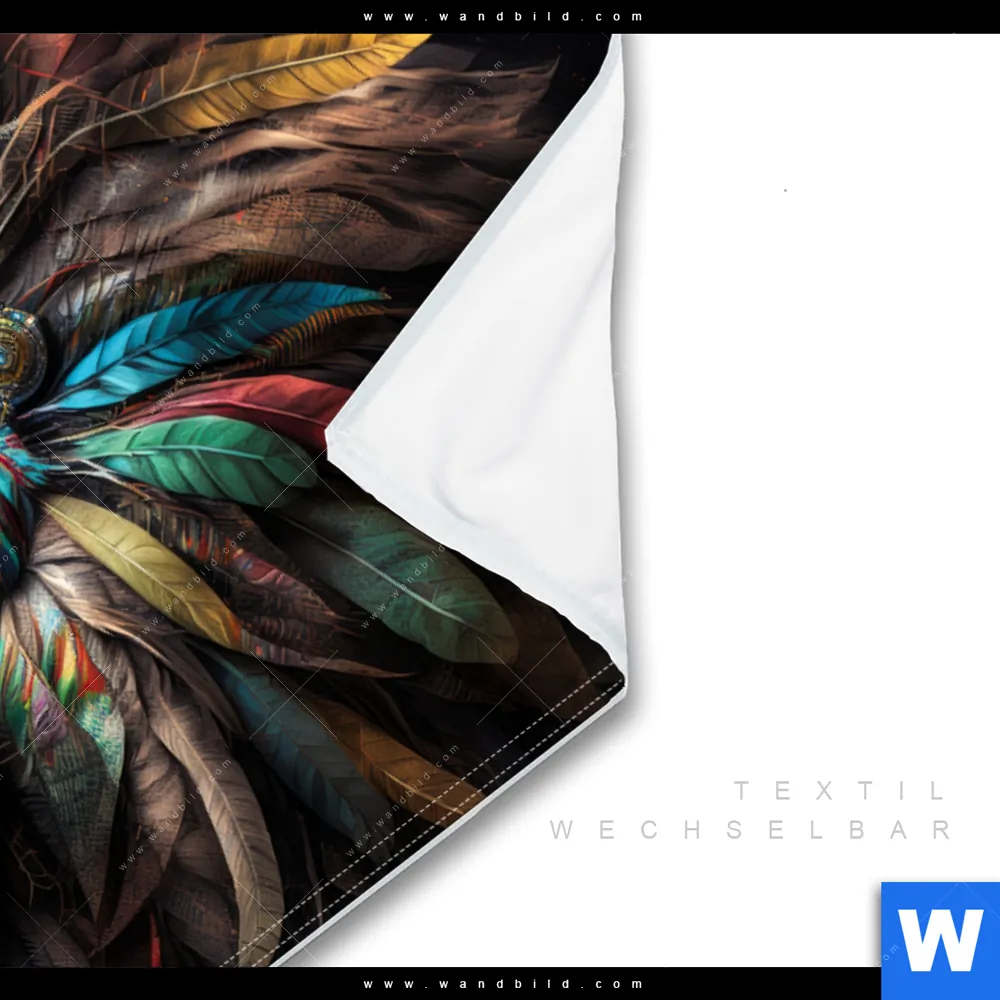 Wechselmotiv Textil | Löwenkopf mit bunten Federn | Querformat
