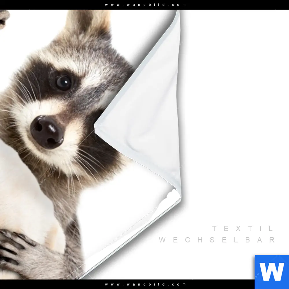 Wechselmotiv Textil | Lustige Waschbären mit Hund | Hochformat