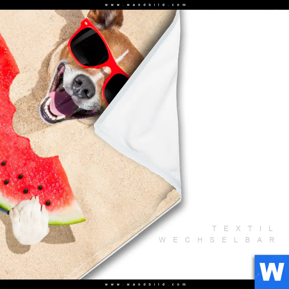 Wechselmotiv Textil | Lustiger Hund am Strand | Hochformat