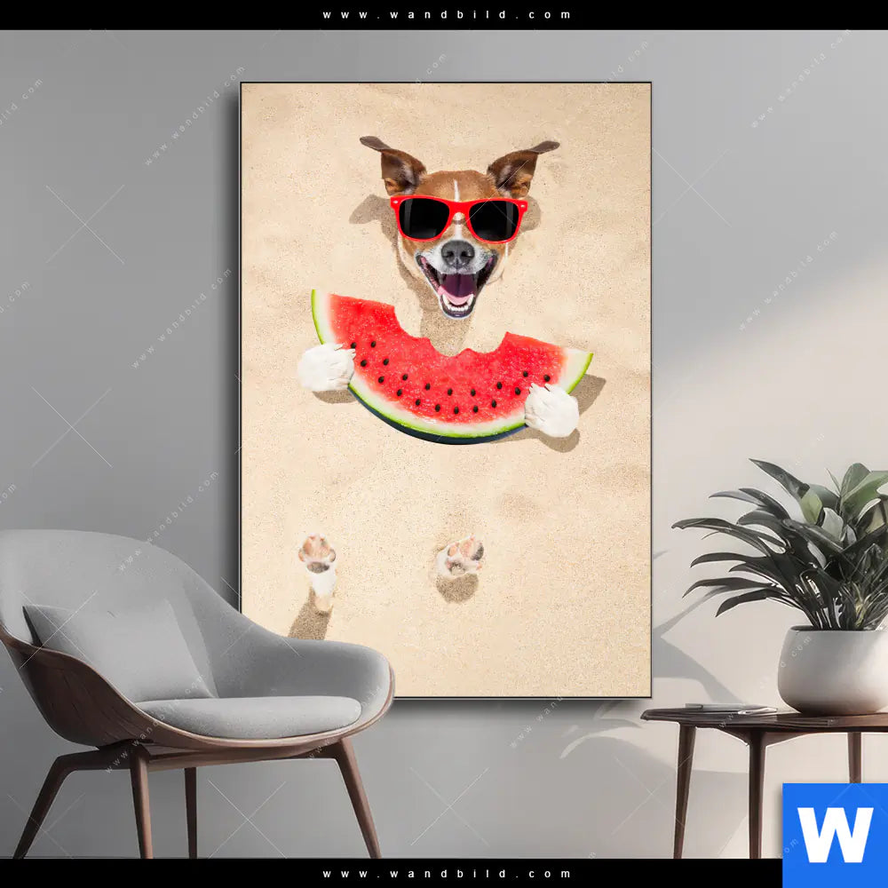Wechselmotiv | Lustiger Hund am Strand | Hochformat