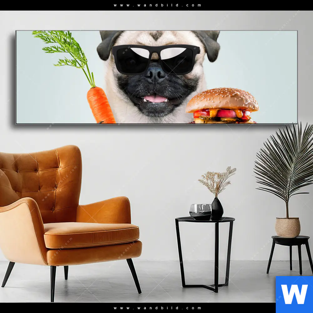 Wechselmotiv | Lustiger Hund mit Burger | Panorama