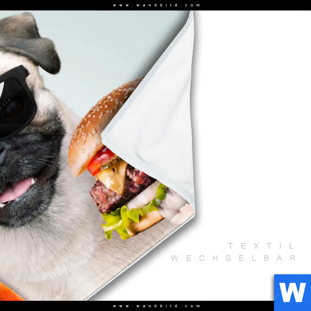 Wechselmotiv Textil | Lustiger Hund mit Burger | Querformat
