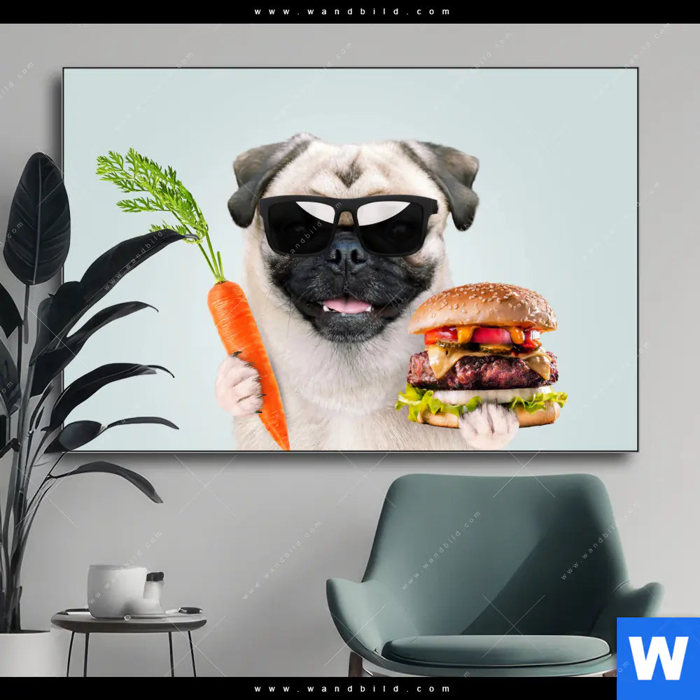 Wechselmotiv | Lustiger Hund mit Burger | Querformat