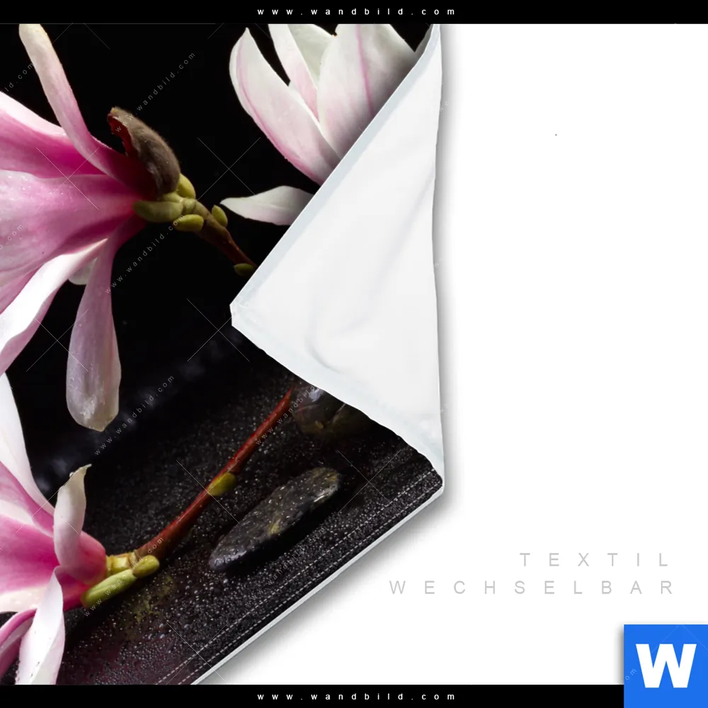 Wechselmotiv Textil | Magnolien & Zen Steine | Quadrat