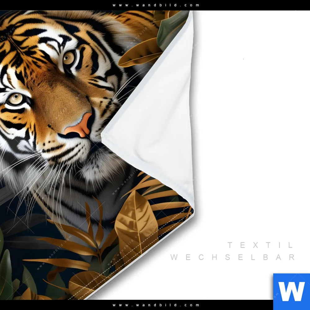 Wechselmotiv Textil | Majestätischer Tiger im Dschungel | Quadrat