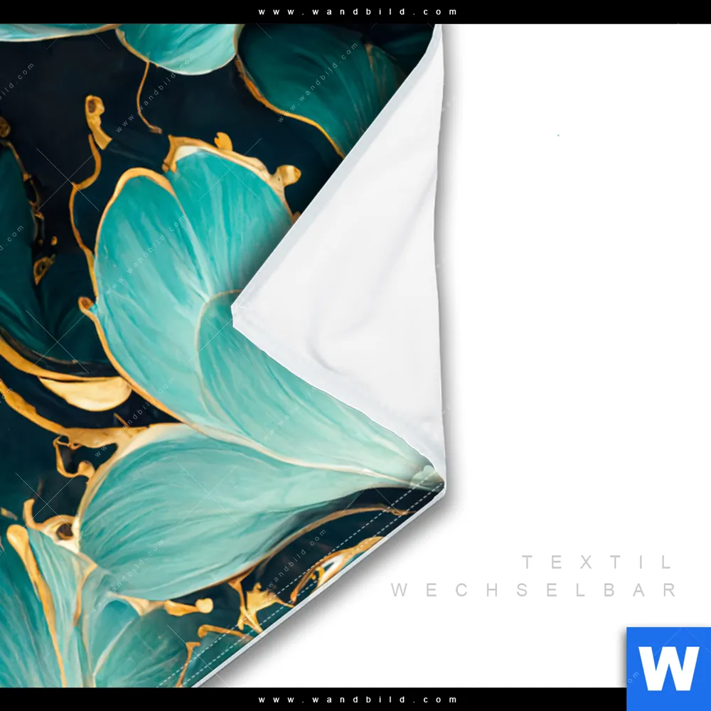 Wechselmotiv Textil | Marmor Blüten in türkis & gold | Hochformat