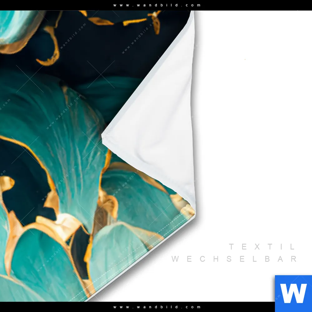 Wechselmotiv Textil | Marmor Blüten in türkis & gold | Panorama