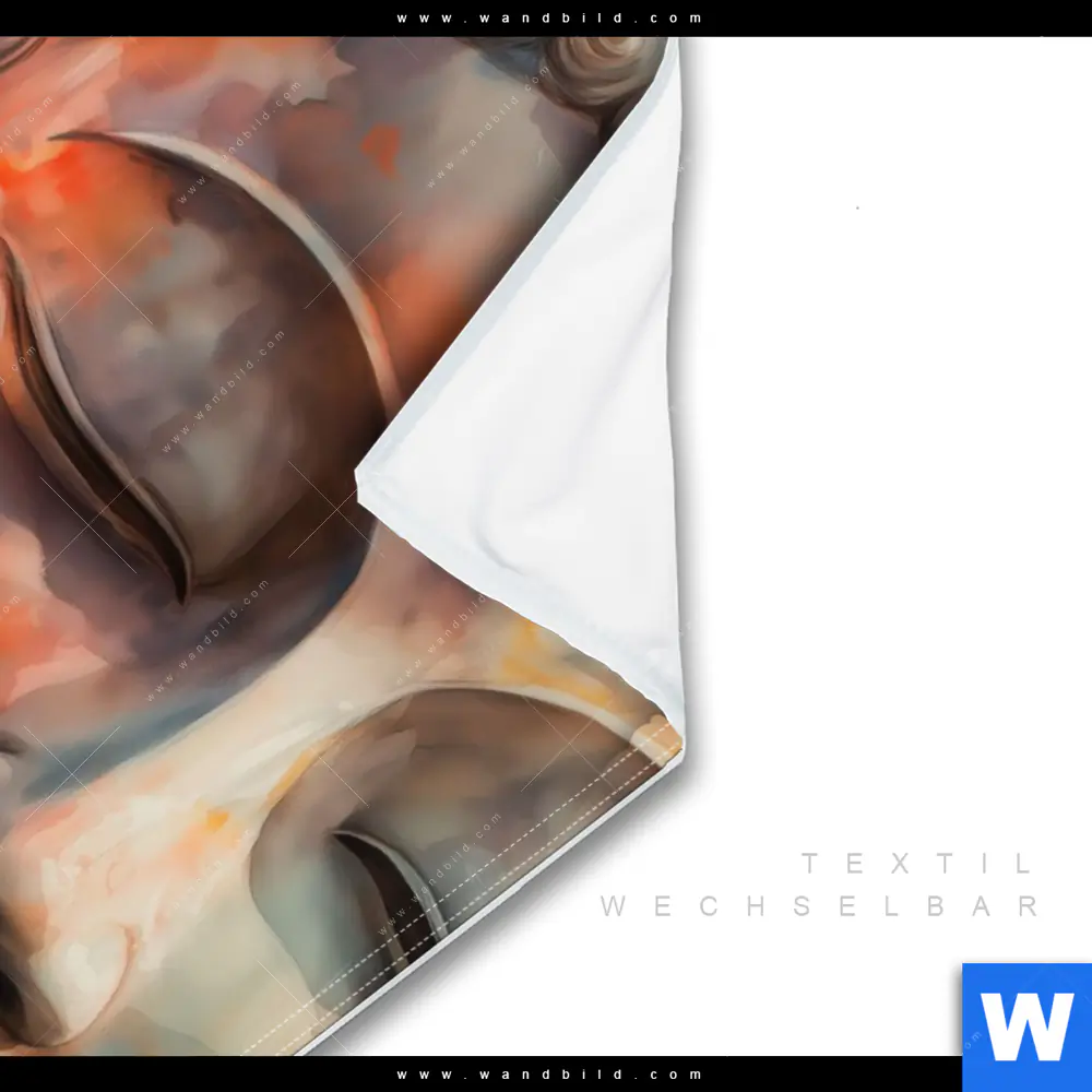 Wechselmotiv Textil | Meditativer Buddha in Blumen | Hochformat