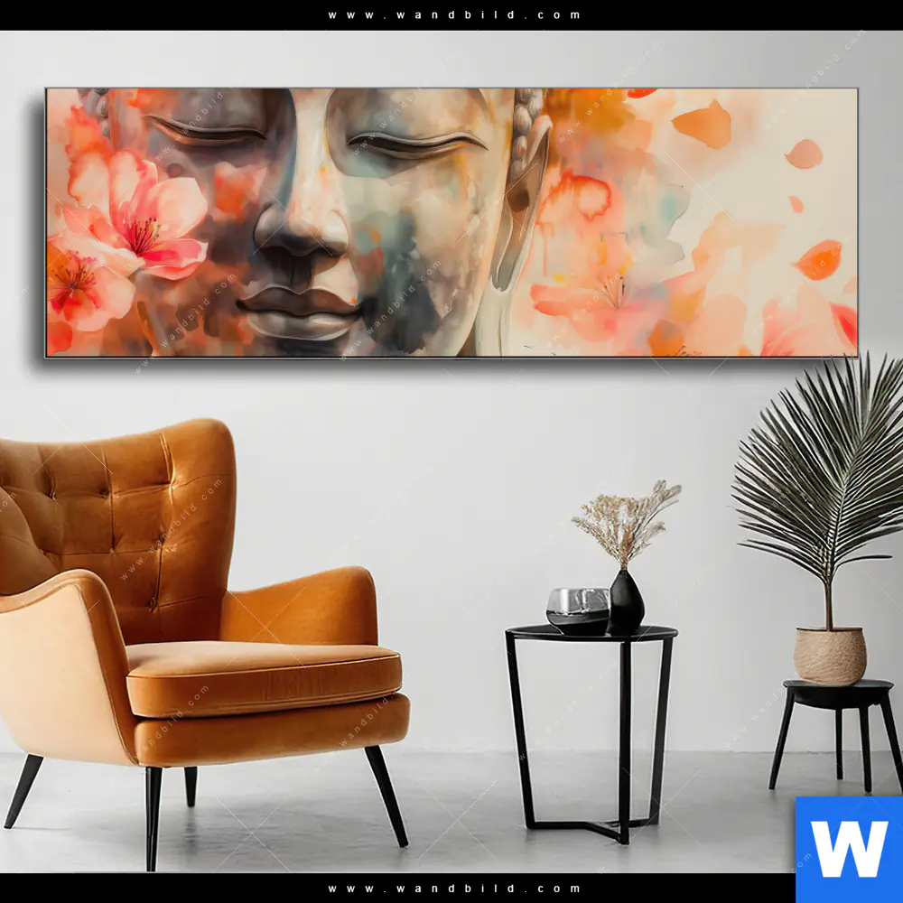 Wechselmotiv Textil | Meditativer Buddha in Blumen | Panorama