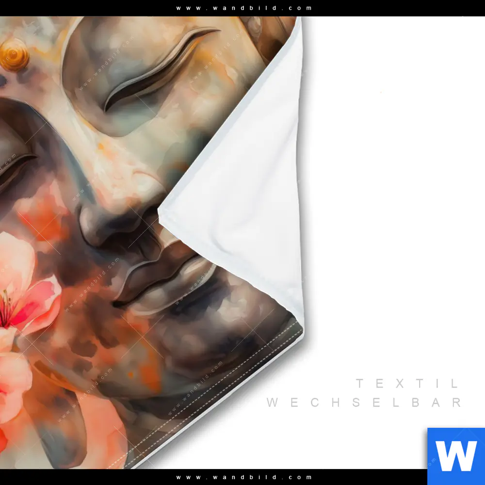 Wechselmotiv Textil | Meditativer Buddha in Blumen | Quadrat