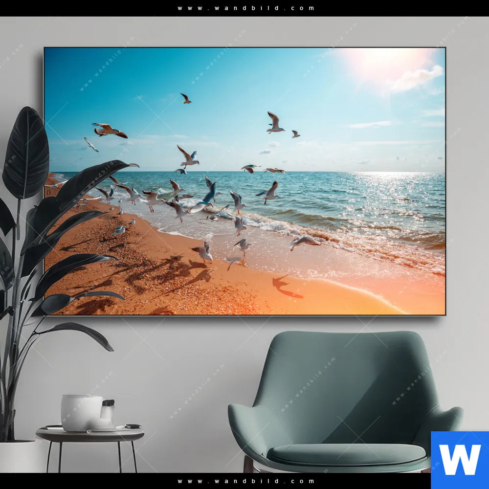 Wechselmotiv Textil | Möwen am Strand | Querformat