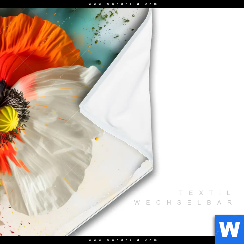 Wechselmotiv Textil | Mohnblume im Farbnebel | Hochformat