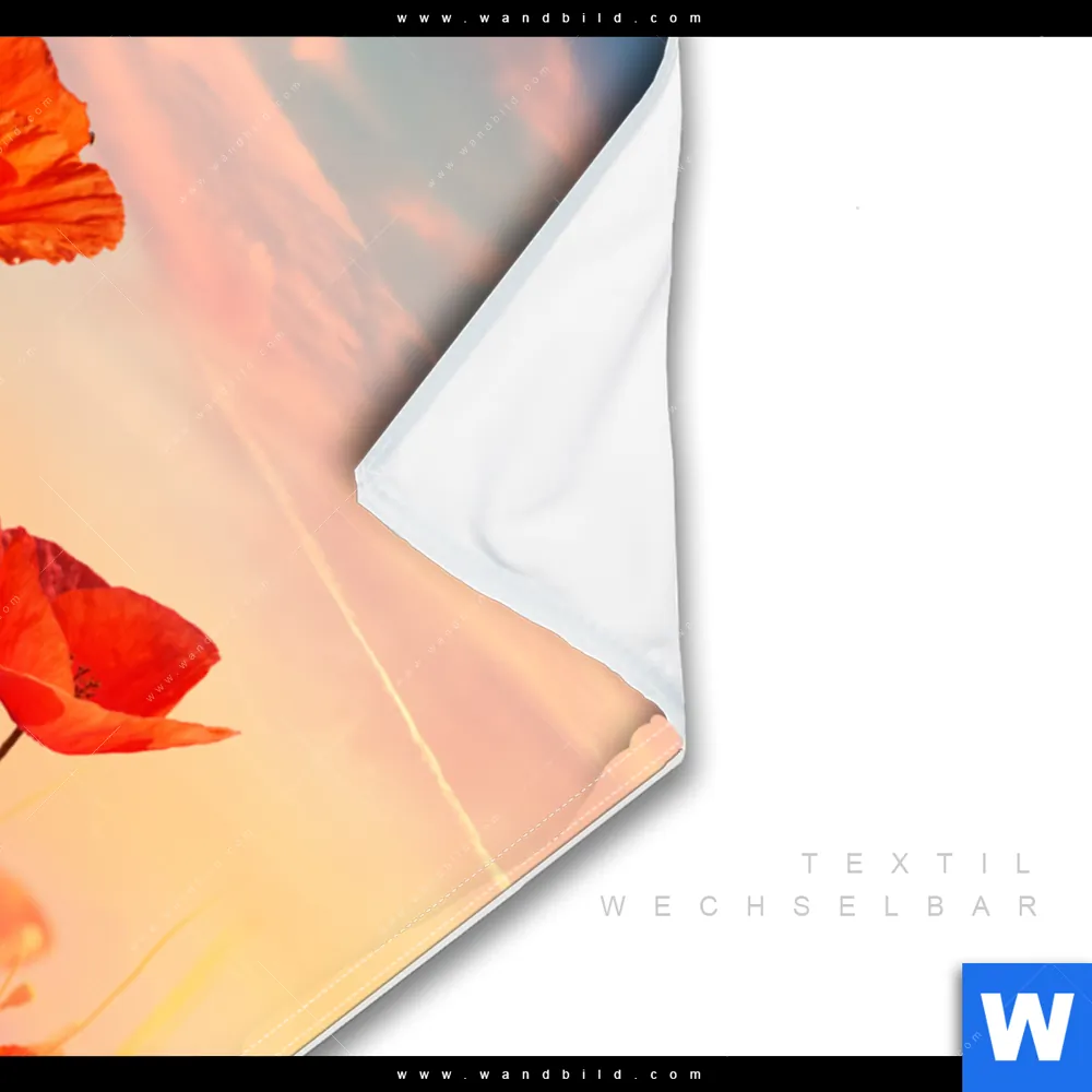 Wechselmotiv Textil | Mohnblumenfeld bei Sonnenuntergang | Hochformat