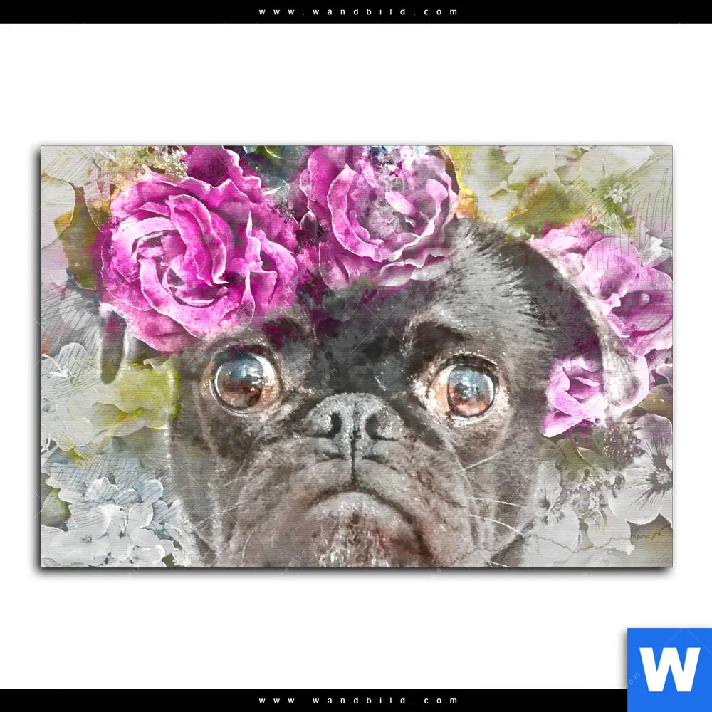 Wechselmotiv Textil | Mops & Blumen | Querformat