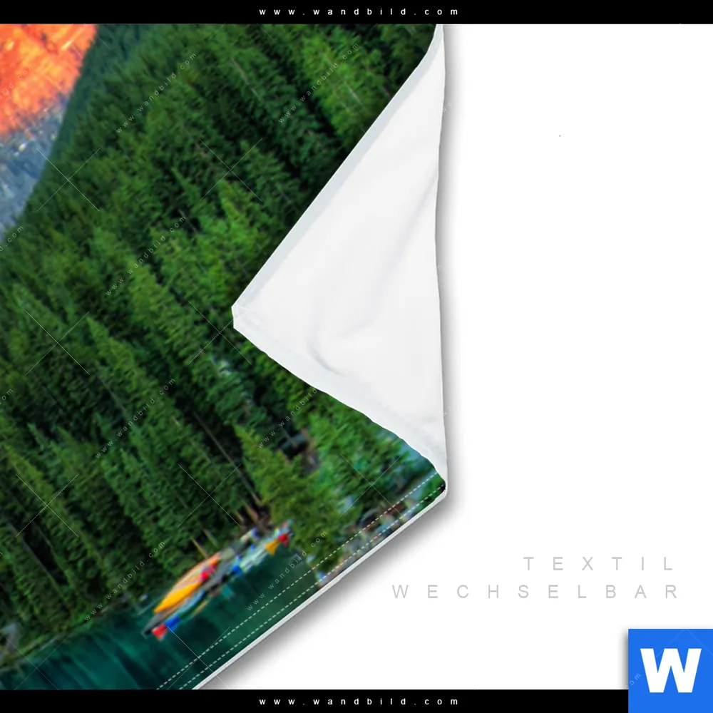 Wechselmotiv Textil | Moränensee Sonnenaufgang | Panorama
