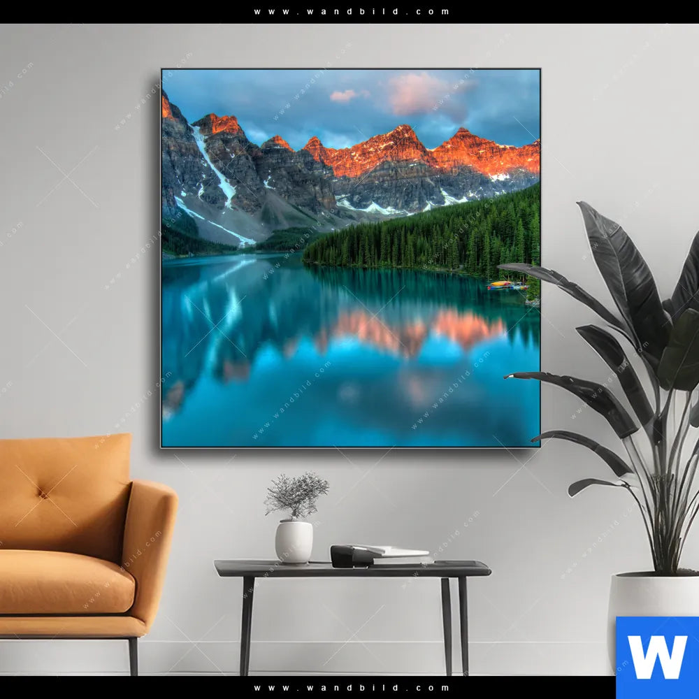 Wechselmotiv Textil | Moränensee Sonnenaufgang | Quadrat