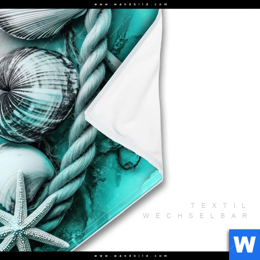 Wechselmotiv Textil | Muscheln-Meereszauber in Türkis | Quadrat