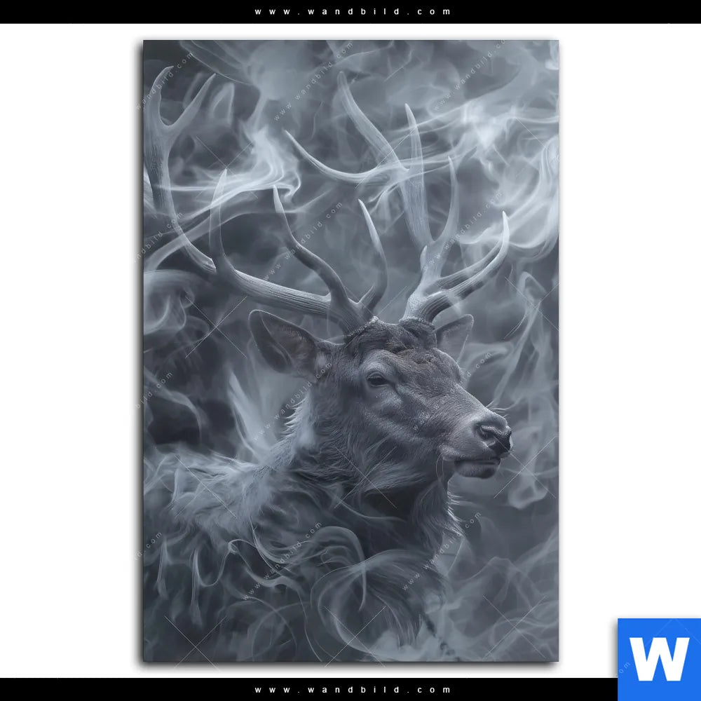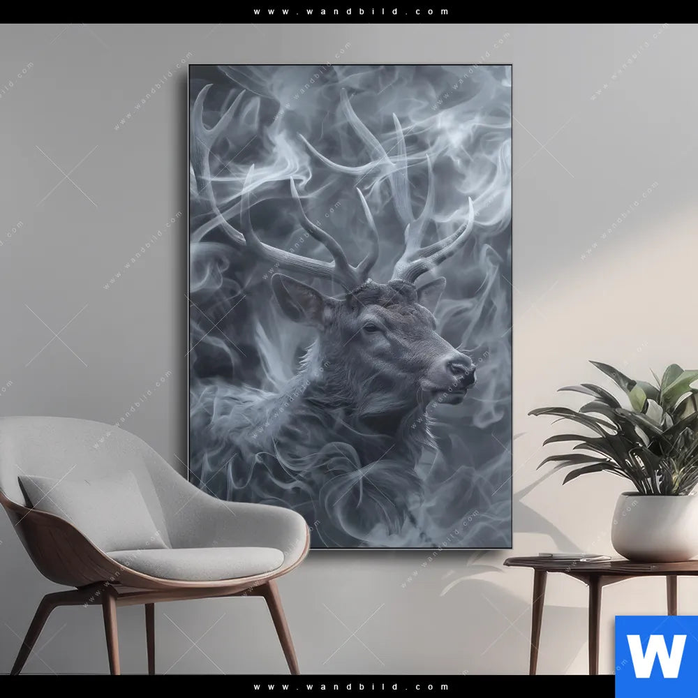 Wechselmotiv Textil | Mystischer Hirsch im Nebel | Hochformat